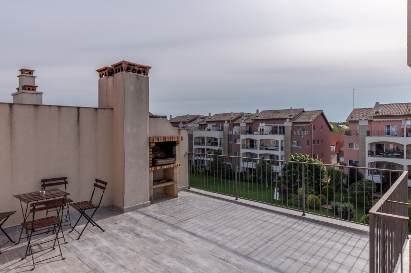 Iti garantam ca odata ce ai pasit in acest complex rezidential, atmosfera de vacanta te va cuprinde imediat. Vei avea acces la toate facilitatile complexului, la gradina privata de 12.000 mp, la piscinele exterioare, spa, sala de fitness iar daca ai copii vor fi incantati de clubul pentru copii unde cu siguranta isi vor face prieteni noi.