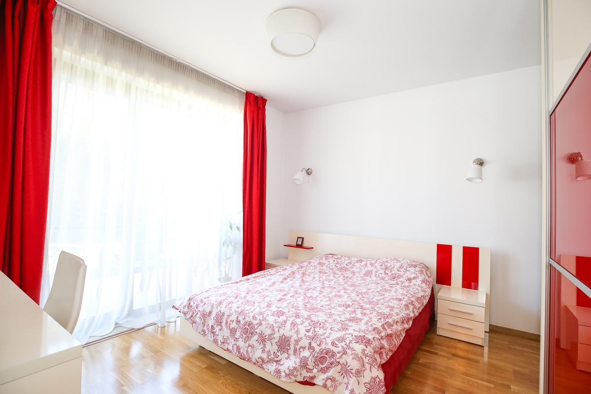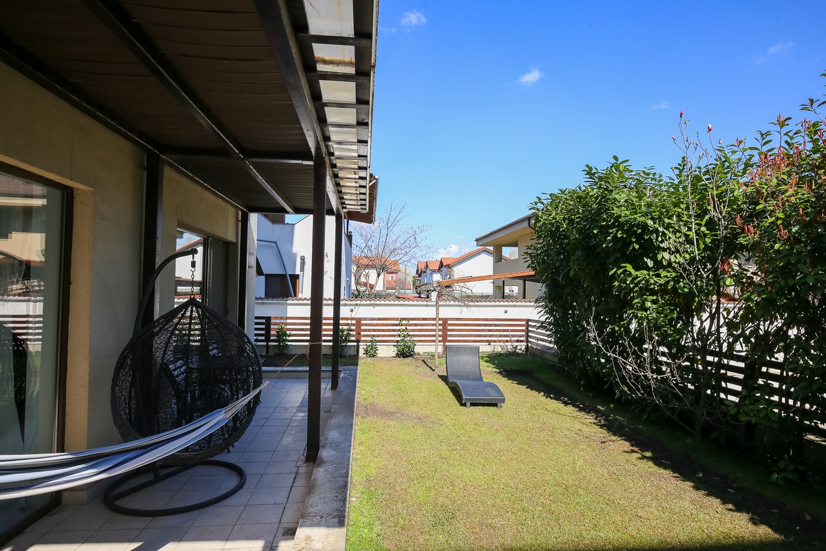 Camerele sunt spatioase si luminoase, mobilate modern si minimalist, bucataria este complet utilata. Suprafata totala utila este de 90 mp, iar gradina si terasa au 140mp. Apartamentul este disponibil imediat.
