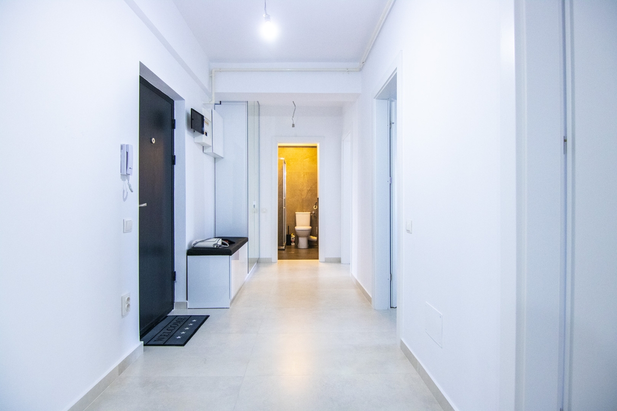 Finisaje premium: gresie, faianta, parchet, geamuri termopan, usa metalica, usa intrare metalica.
