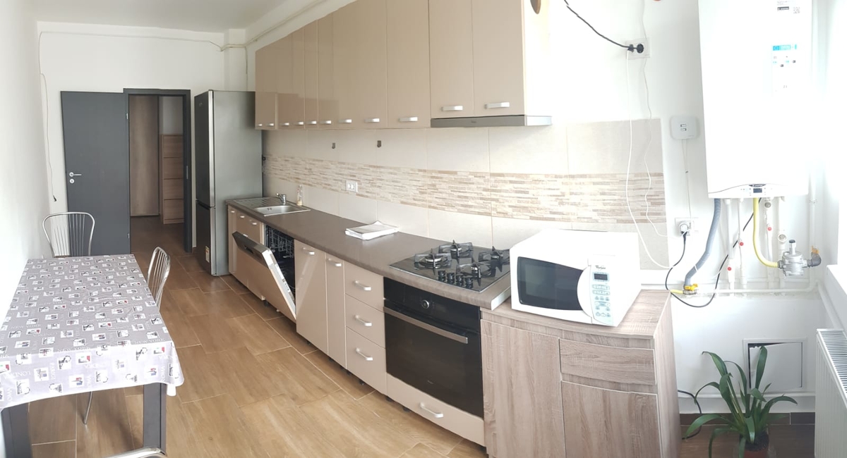 Apartamentul este modern:gresie,faianta,parchet laminat,termopane ,tripane,exista cablu tv/si net/tras in toate camerele inclusiv bucatarie,usa metalica,interfon,camere de filmat de supraveghere video pentru securitate.In bloc exista firma Digi cu internet (gigabit 1000),fibra optica.