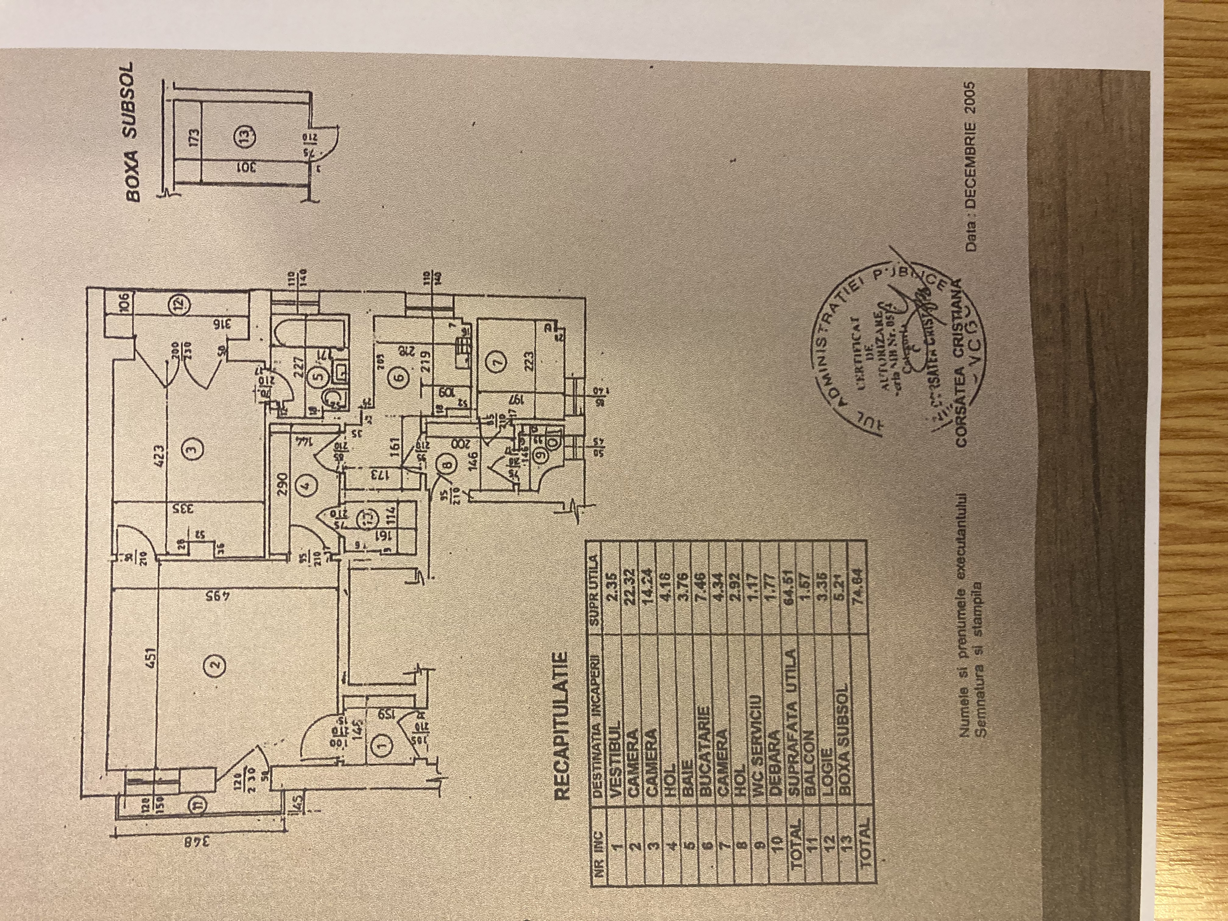 Suprafata utila este de 64,51mp la care se adauga cele doua balcoane si boxa in proprietate de la subsol rezultand o suprafata totala de 74,64mp.