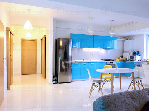 2 balcoane, living cu bucatarie open, 2 dormitoare, 2 locuri parcare, finisaje de top, complex Blue Village, loc de joaca, liniste.