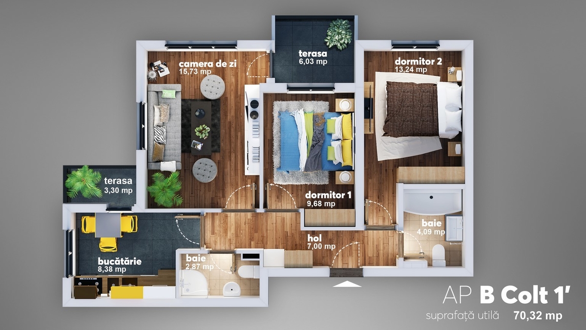 Va propunem un apartament cu 3 camere si compartimentare moderna, etaj intermediar, complet finisat si bransat la utilitatile orasului.