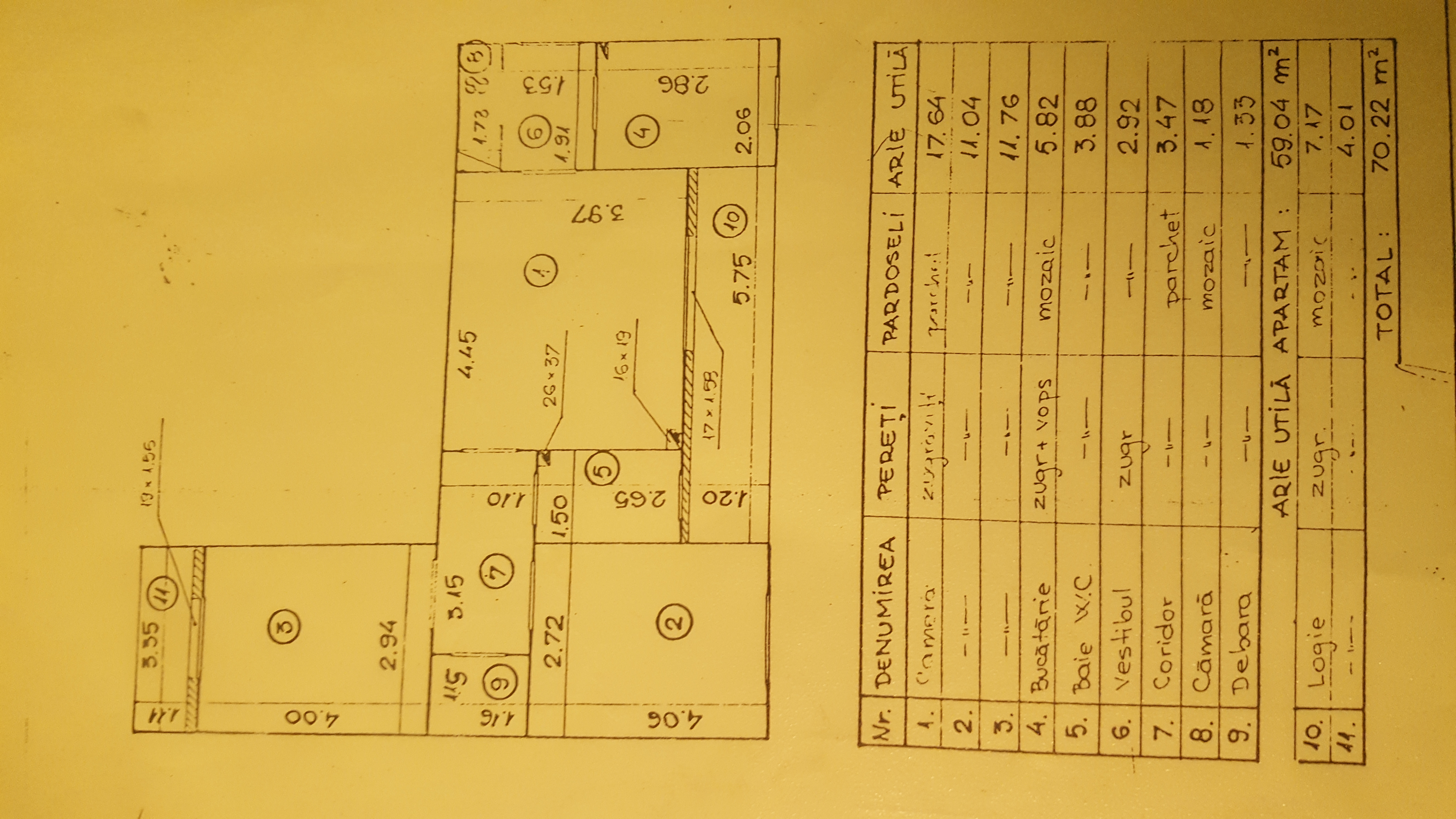 Proprietar, vand apartament 3 camere, 70mp utili [59mp apartamentul + 11 mp cele 2 balcoane (inchise)], semidecomandat, luminos [pozitionare S-V.