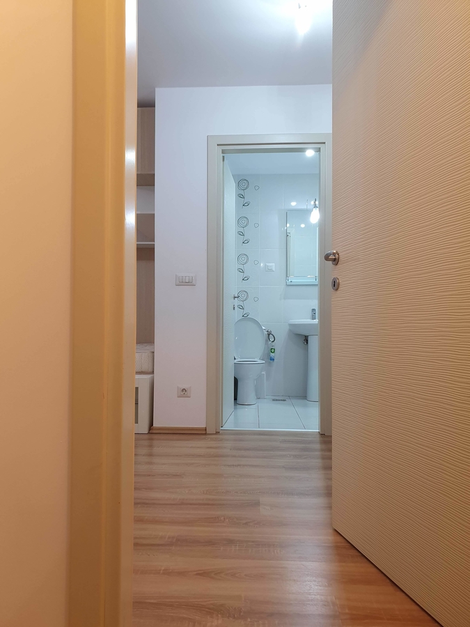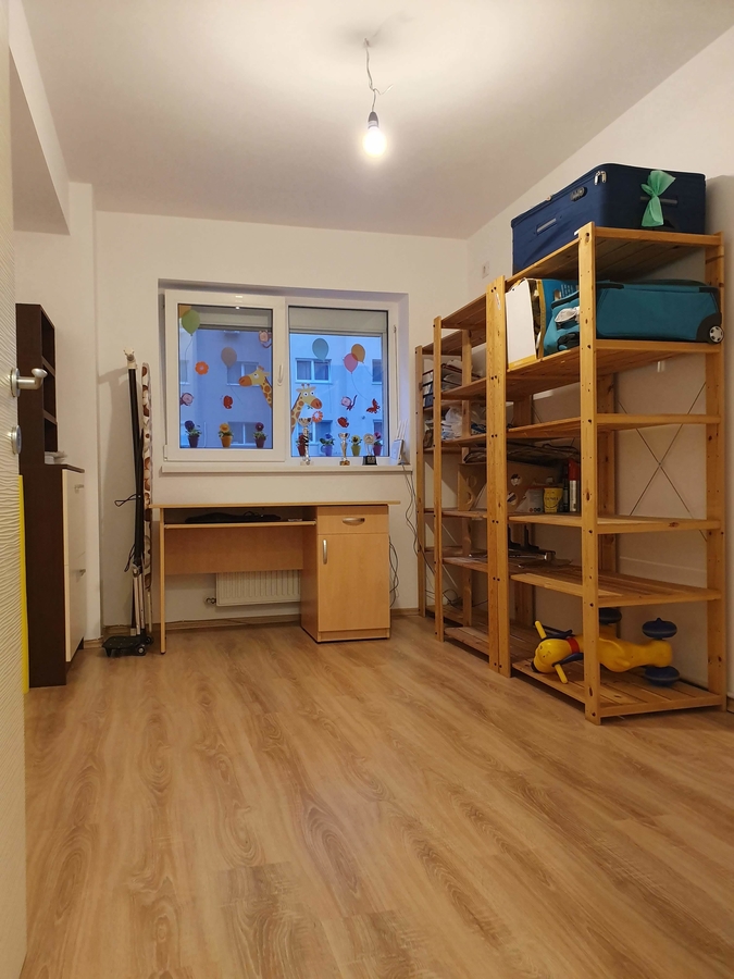 - 4 dulapuri de intaltimea camerei, foarte adanci si late (pentru a inlocui lipsa unei debarale)