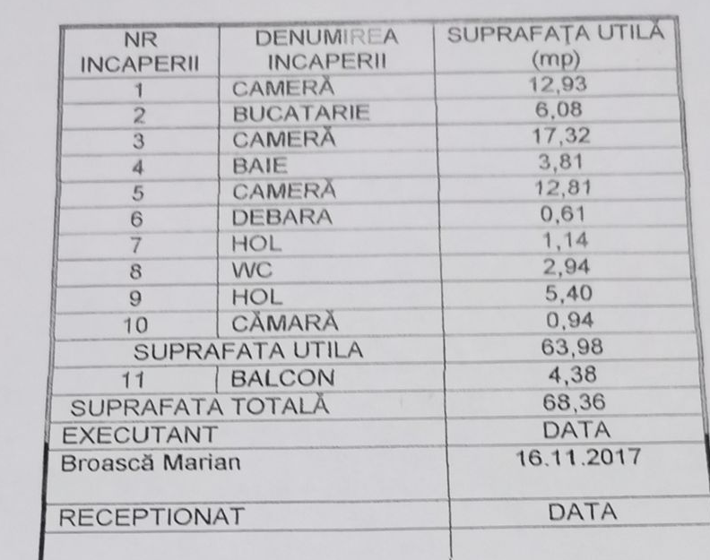 Optiuni interior: 2 grupuri sanitare Apometre Balcon Debara Termopan