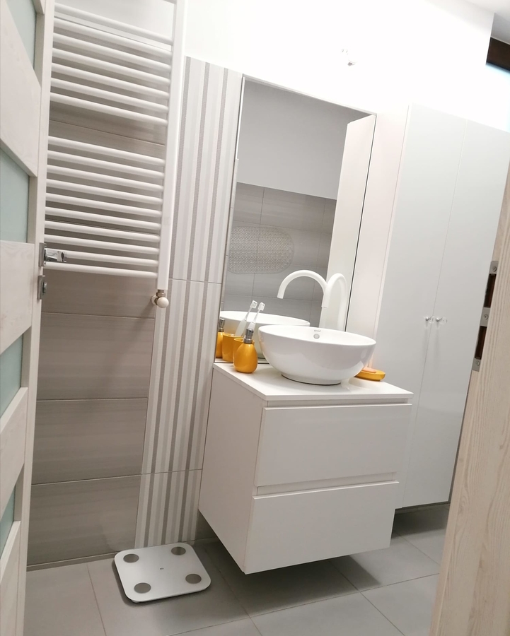 - Mobila din bai , facuta pe comanda speciala cu fronturi MDF , cu manere frezate , usi si sertare cu amortizoare sistem Bloom