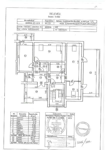 Apartamentul este confort 1 sporit, decomandat, se afla la Mansarda blocului desfasurat pe S+P+2E+M, edificat in 2012, avand o suprafata utila de 97.73 mp si totala de 145.79 mp (2 terase + balcon) + 25 mp 2 locuri de parcare.