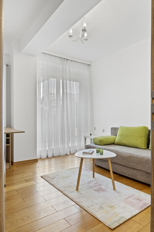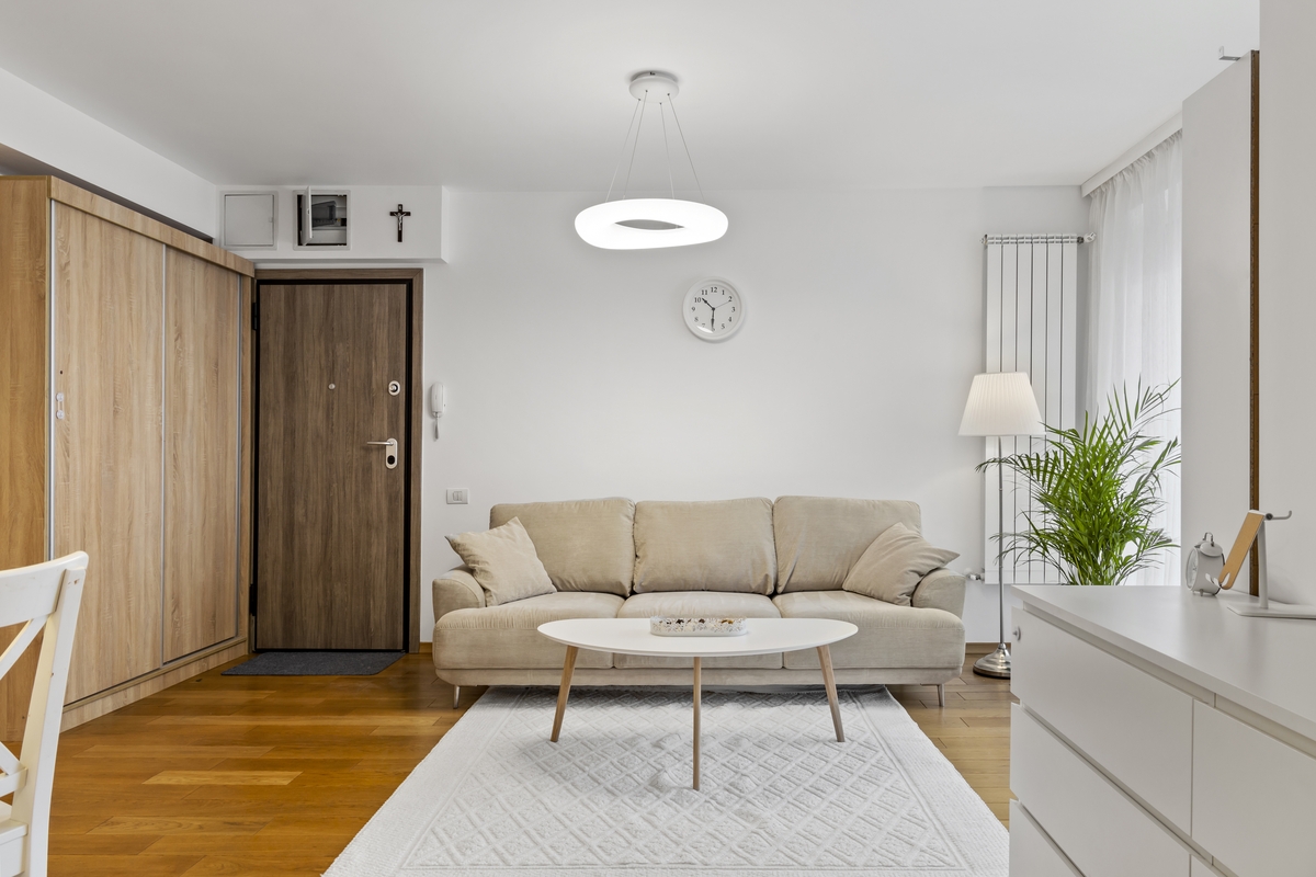 Din living putem iesi in terasa/balconul semi- acoperita de 6 mp.
