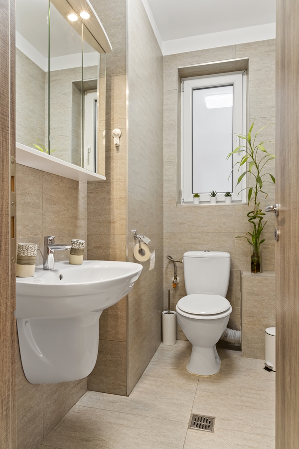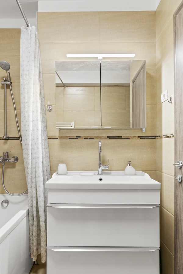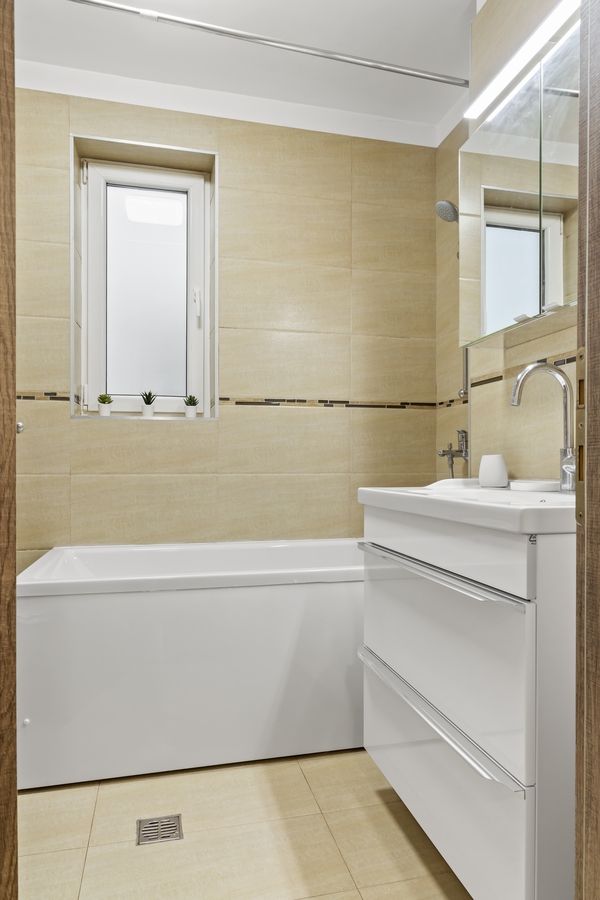 Apartamentul are 2 grupuri sanitare, cu suprafete asemanatoare, iluminate si aerisite natural.