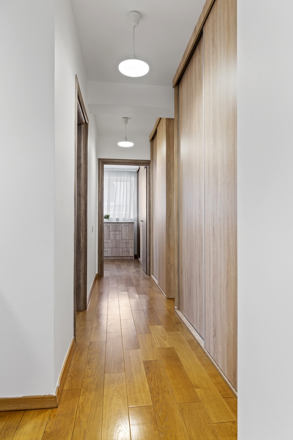 Toate camerele si holurile apartamentului sunt prevazute cu dresinguri incorporate in perete, pentru a expluata cat mai mult spatiul util din interior.