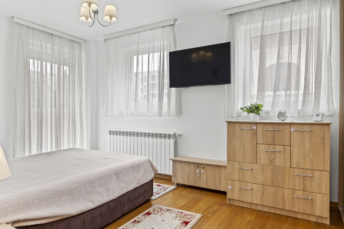 Dormitorul nr.1 are iesire catre tesasa/balcon semi-acoperita, si are o suprafata de 10 mp.