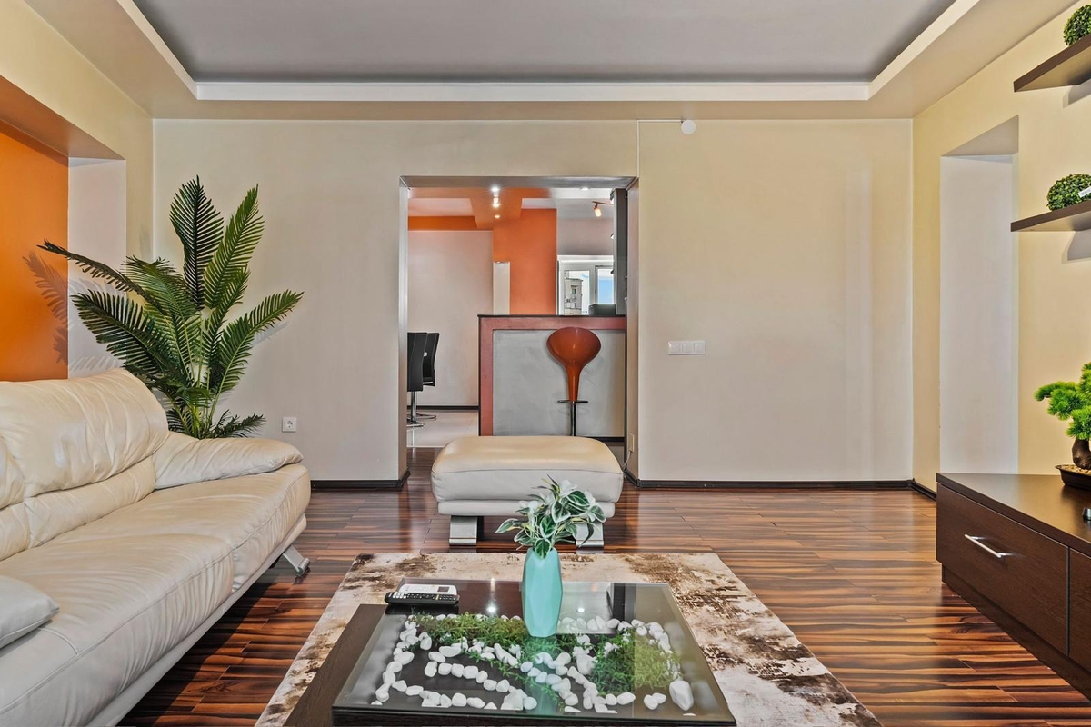 Apartamentul are o suprafata de 103 mp si este amplasat la etajul 6 din 8 al unui imobil solid, construit in 1993. Proprietatea beneficiaza de finisaje de inalta calitate, ferestre mari ce ofera lumina naturala pe tot parcursul zilei si o vedere panoramica spectaculoasa asupra orasului.