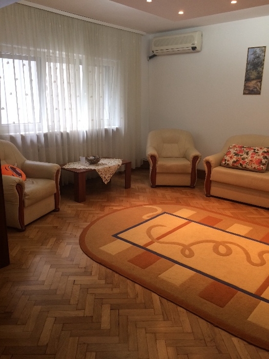 Apartamentul este la parterul unui bloc gen vila, P+3, construit in anii 70. Este decomandat, are 2 balcoane, 2 grupuri sanitare, o boxa (2,05mp ) si garaj (19,87mp ) la subsol. Un dormitor a fost unit cu sufrageria , rezultind o camera de zi mai generoasa. Imobilul este reabilitat termic si se afla la capatul troleibuzelor 86,65. Apartamentul are parchet, gresie, faianta, calorifere schimbate, termopane, usa metalica la intrare, usi interior de lemn si rulouri exterioare. Este contorizat (gaze, apa si caldura ) si are interfon si usa cu telecomanda la garaj. Apartamentul se vinde mobilat si utilat.