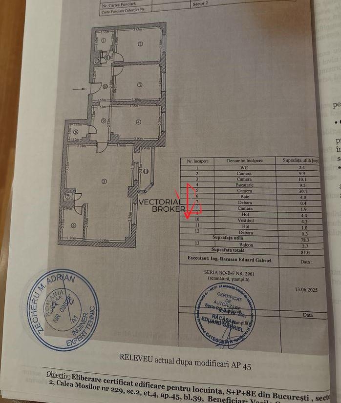 Vectorial Broker va prezinta un apartament de 4 camere in Mosilor, reper Mihai Eminescu, confort 1 semidecomandat, avand suprafata de 81 mp, cu 2 bai si 1 balcon. Locuinta este situata la etajul 4, intr-un imobil tip bloc de 8 etaje, construit in anul 1986, avand 3 apartamente pe palier. Blocul este reabilitat si anvelopat, vederea din apartament este pe spate. A fost transformat in 4 in 3 camere prin desfiintarea peretelui despartitor dintre sufragerie