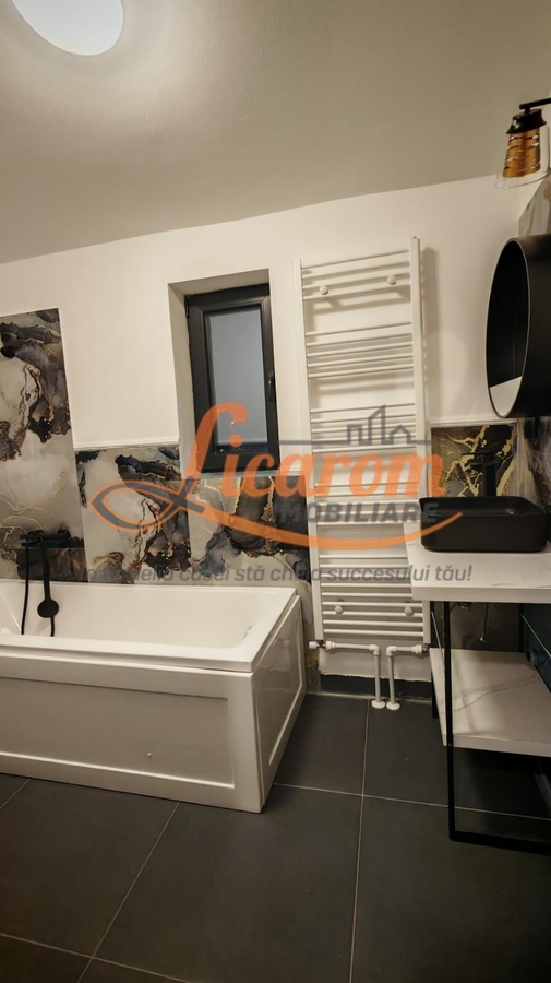 Interiorul este amenajat modern si cu bun gust,dispune de geamuri termopan,gresie faianta,parchet,incalzirea prin pardoseala fiind realizata cu centrala termica proprie.
