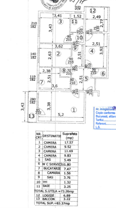 Detine o suprafata totala de 112.88 mp, din care suprafata utila 83.37 mp.
