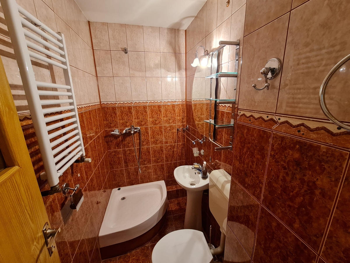Apartamentul dispune de gresie, faianta, parchet, usa metalica, geamuri termopan la bucatarie si balcon, centrala termica proprie, 3 holuri mari, doua bai, renovat, doua aparate de aer conditionat, mobilat si utilat complet, balcon mare de 8 mp, calorifer in balcon.