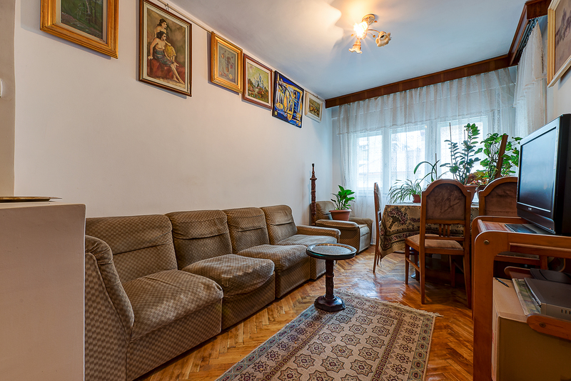 La parterul inalt al unui bloc bine facut cu 4 etaje, situat pe o straduta linistita din zona Clucerului, este disponibil spre vanzare un apartament compus din 5 camere. Imobilul a fost construit in anul 1980, a fost recent termoizolat si cuprinde 10 locuinte.