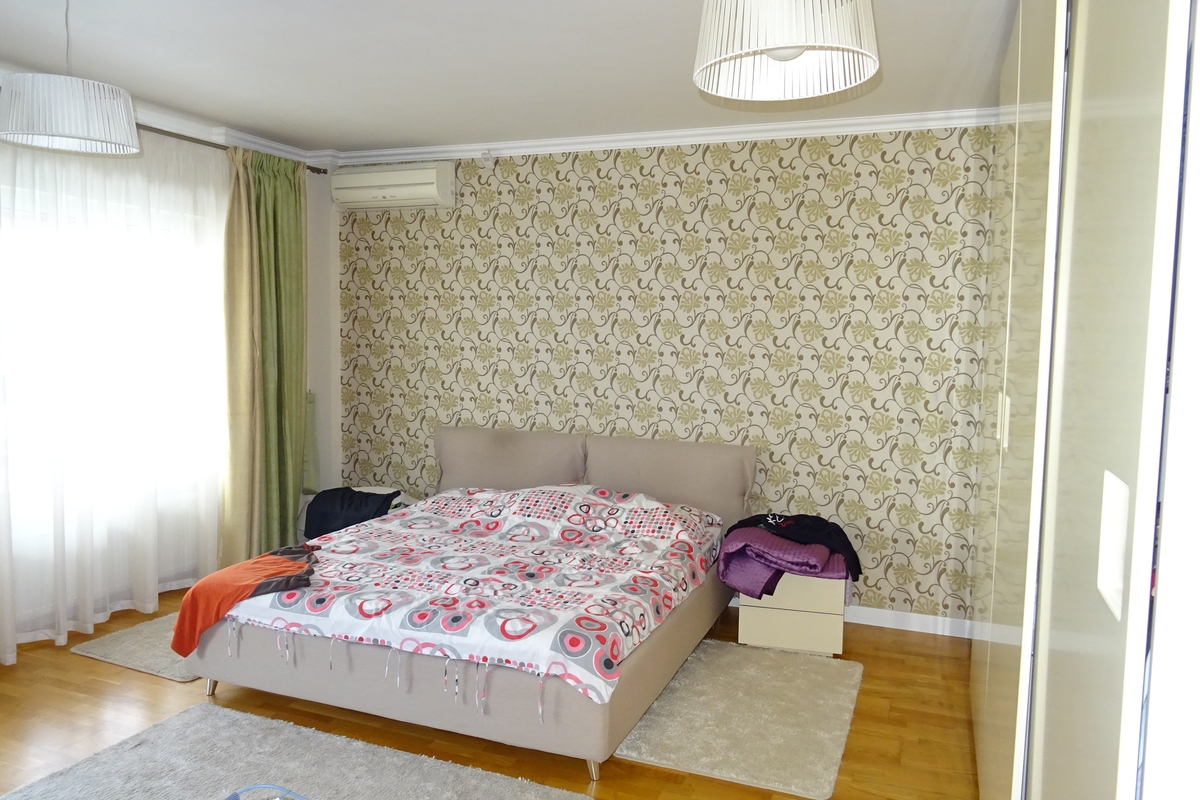 apartament 5 camere decomandat, toate imbunattirile, 2 grupuri sanitare, terasa de 75 mp, centrala termica, bucataria open space cu livingul, incalzire pardoseala, aer conditionat in fiecare camera;