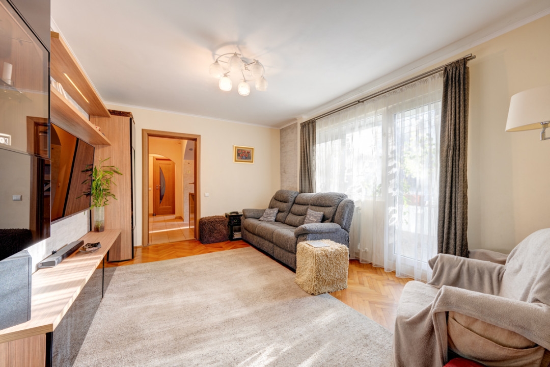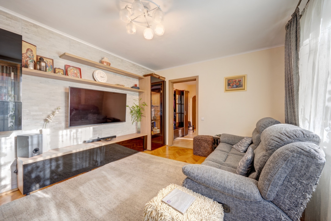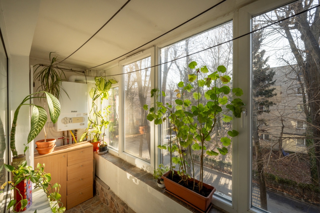 Amplasat in zona foarte linistita si cu spatii verzi, cu acces imediat la mijloace de transport. Apartament luminos si spatios, potrivit pentru familie cu copii, situat la etajul 2. Imobil reabilitat termic, cu access securizat si bine intretinut. Interior practic si confortabil, cu o logie inchisa, centrala proprie de apartament, in stare buna.