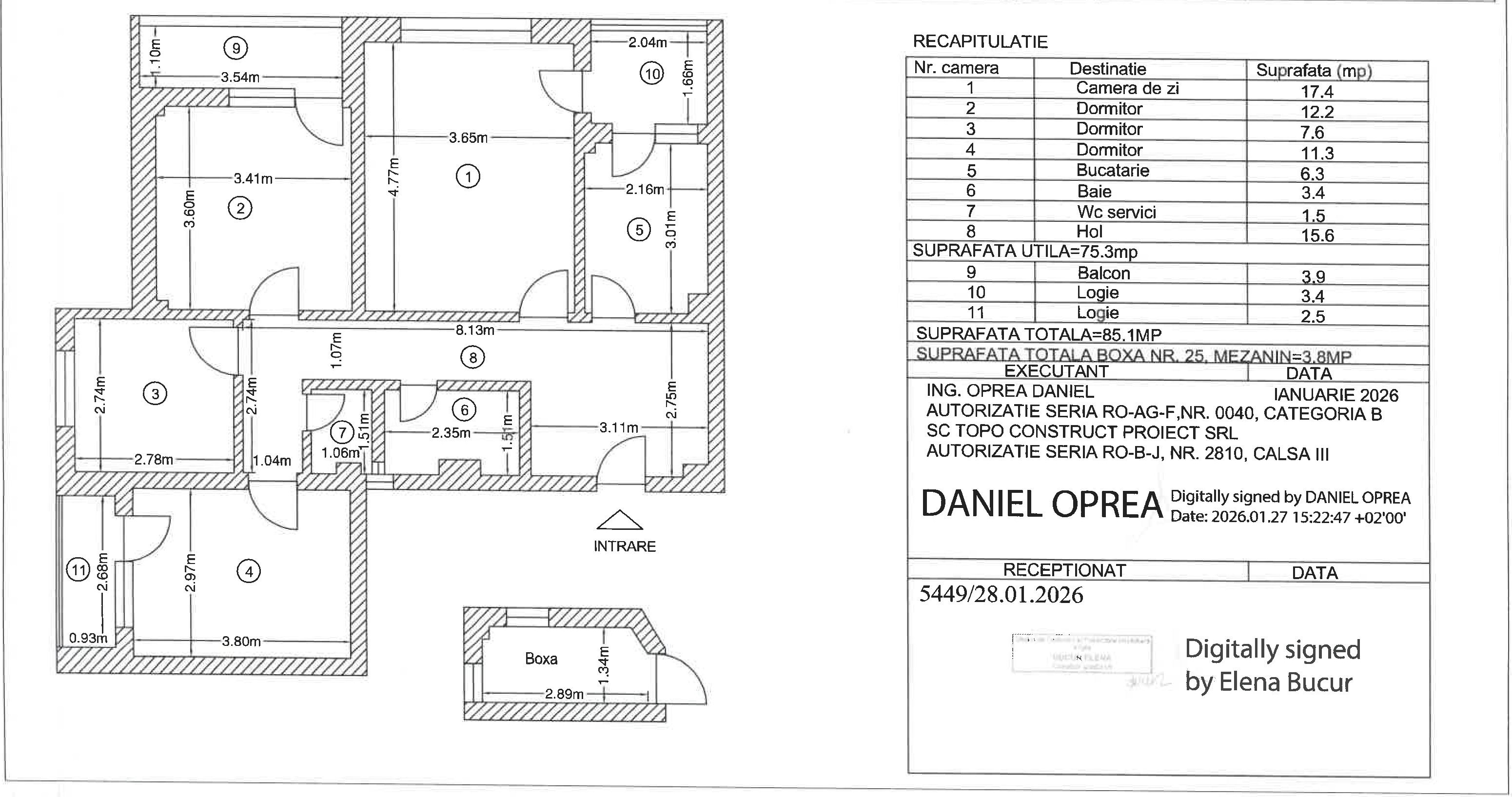 Optiuni interior: 2 grupuri sanitare Apometre Balcon Centrala termica Contor gaze Debara Inst. electrice noi Izolatie termica Termopan Usa metalica