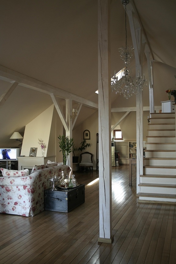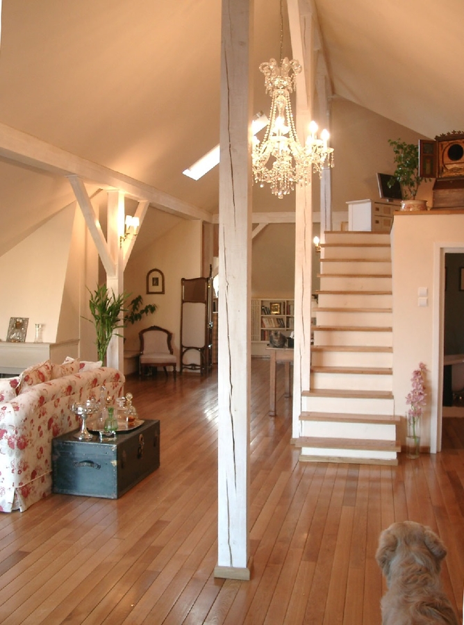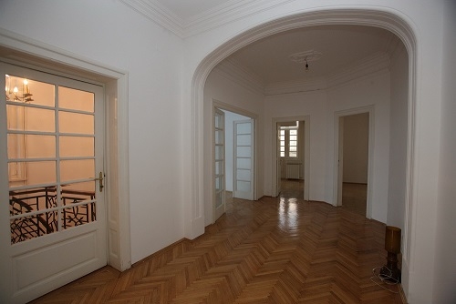 Apartamentul este situat intr-o vila (subsol + P + 1 + mansarda/loft ) pe Strada Polona 86 la etajul 1, intrarea in apartament facandu-se de la parter, pe o scara interioara în folosință exclusivă. Scara, din mozaic grenat original, e mărginita de panouri cu model art nouveau de fier forjat si cu mînă curenta din lemn de stejar, - păstrând, la fel ca și apartamentul în sine-, toate elementele originale din perioada construcției imobilului, semnată în 1936 de un arhitect italian. Apartamentul are o arhitectura elegantă, cu arcade si stucaturi pe tavan si camerele sunt dotate cu galerii speciale de lemn lacuit pentru suspendarea tablourilor.