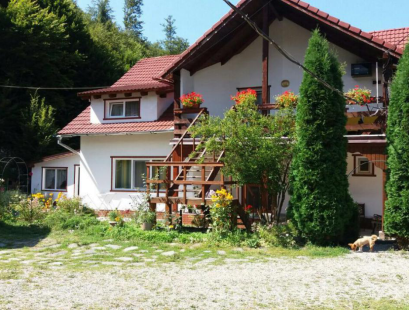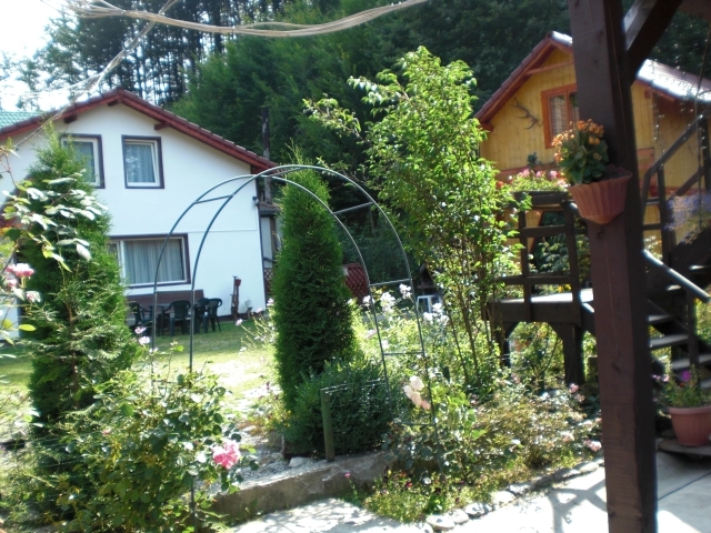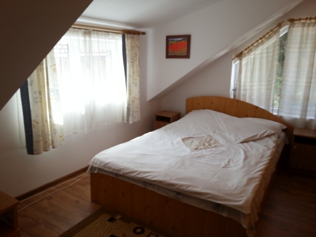 casa de vacanta sau pensiune, complet mobilat. Corp principal 7 camere en-suite. Cabana: 2 camere, 1 baie, living bucatarie. Foisor lemn: 2 camere cu baie. Gradina, 3 terase, 2 zone gratar, garaj.
