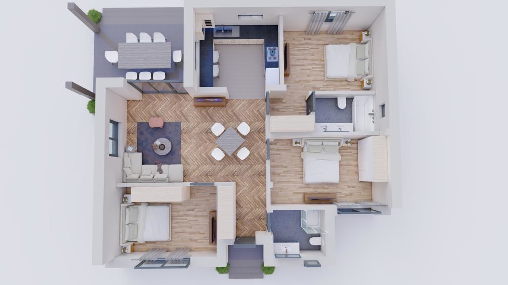 Optiuni interior: 2+ gr. sanitare Alimentare apa Camera serviciu Canalizare Centrala termica Dressing Gaze Izolatie termica Living Terasa