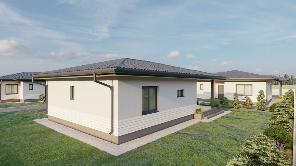 complex rezidential de case pe un nivel, la doar 300 m de Edeland Park, complex cu circuit inchis, acces facil catre centrul comunei, curte generoasa, finisaje premium, ultimele unitati, comision 0%