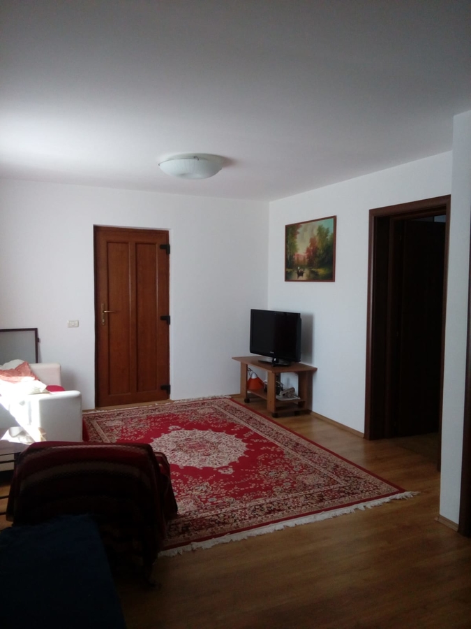 Casa la curte, living, 4 camere, 4 bai, parter+etaj+pod+garaj 27 mp. Construita din caramida. 465mp s. teren, 220mp s. utila