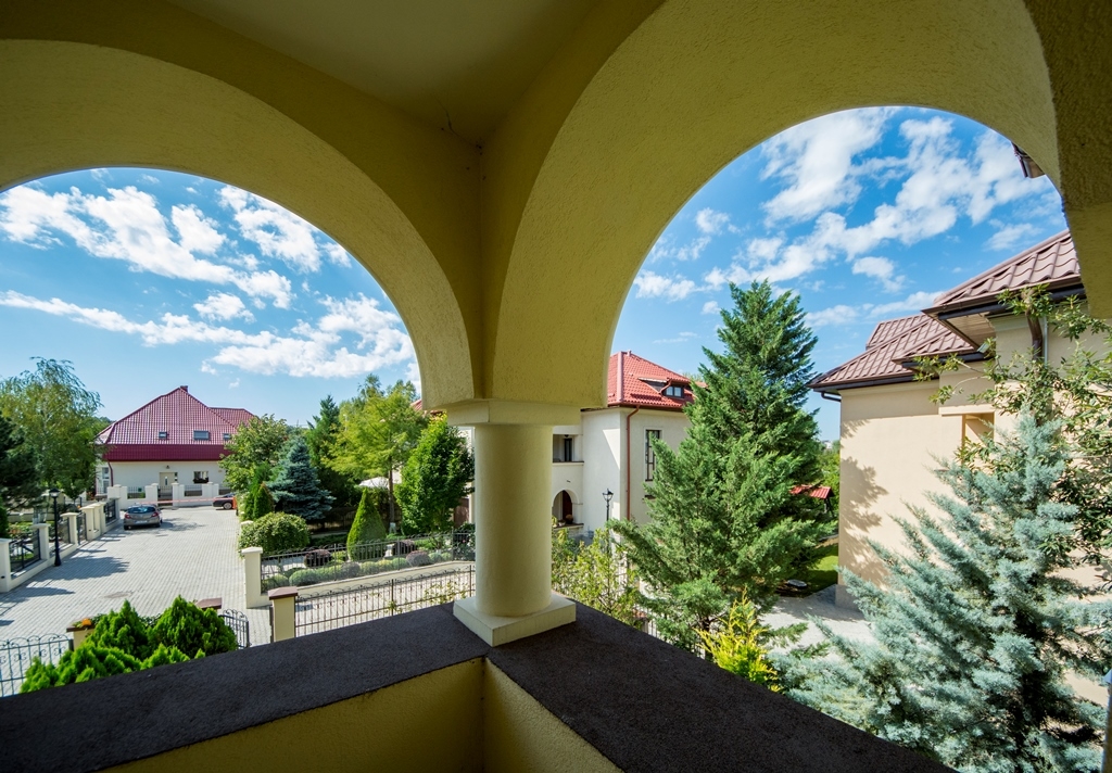 Usile si stucaturile au fost pictate manual la fel ca si vitraliile care creeaza o atmosfera magnifica. Balcoanele si intrarea sunt placate cu granit iar termopanele sunt din lemn stratificat de cea mai buna calitate.