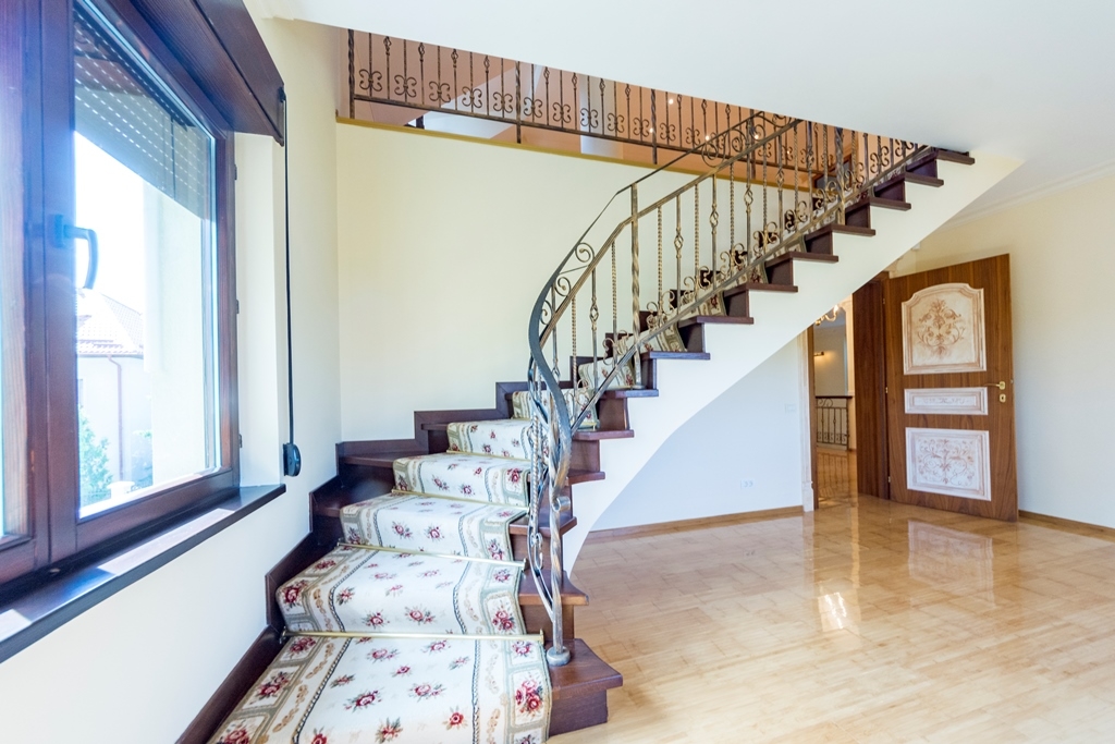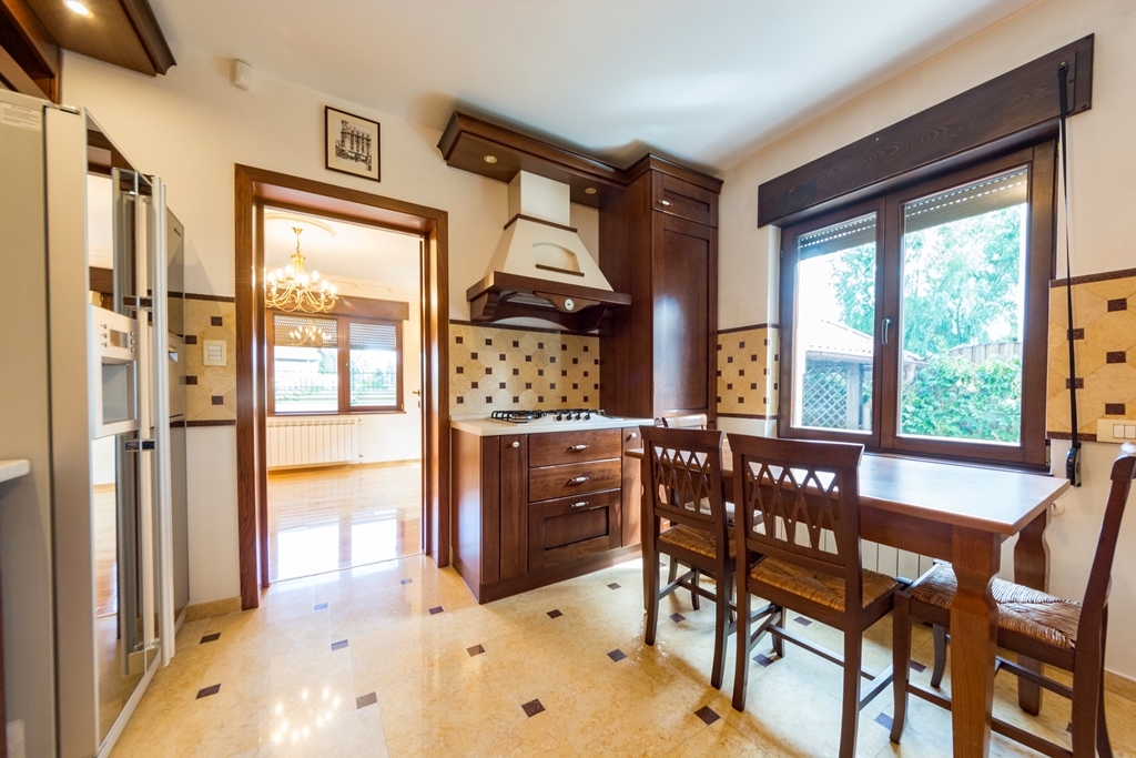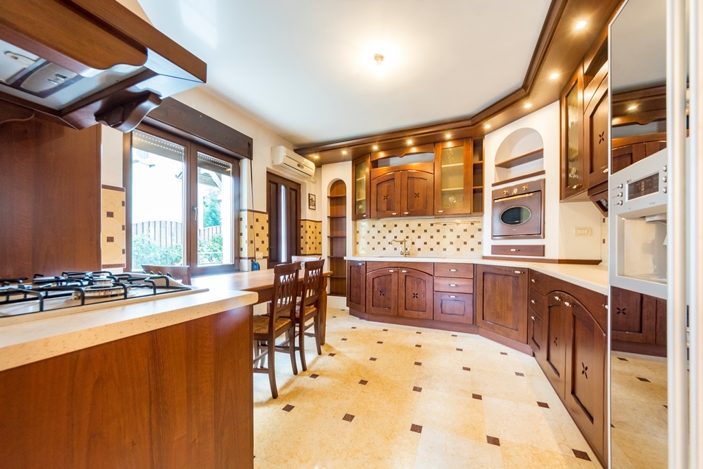 Bucataria italieneasca utilata complet, scarile interioare din lemn acoperite de covoare din lana de cea mai buna calitate si balustradele din fier forjat si lemn masiv completeaza perfect tabloul acestei proprietati minunate.