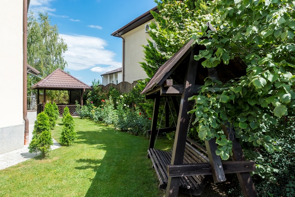 Superba proprietate este completata de o crama intima, iar gradina, intretinuta printr-un sistem de irigatii automatizat este completata perfect de un foisor si un balansoar de lemn.