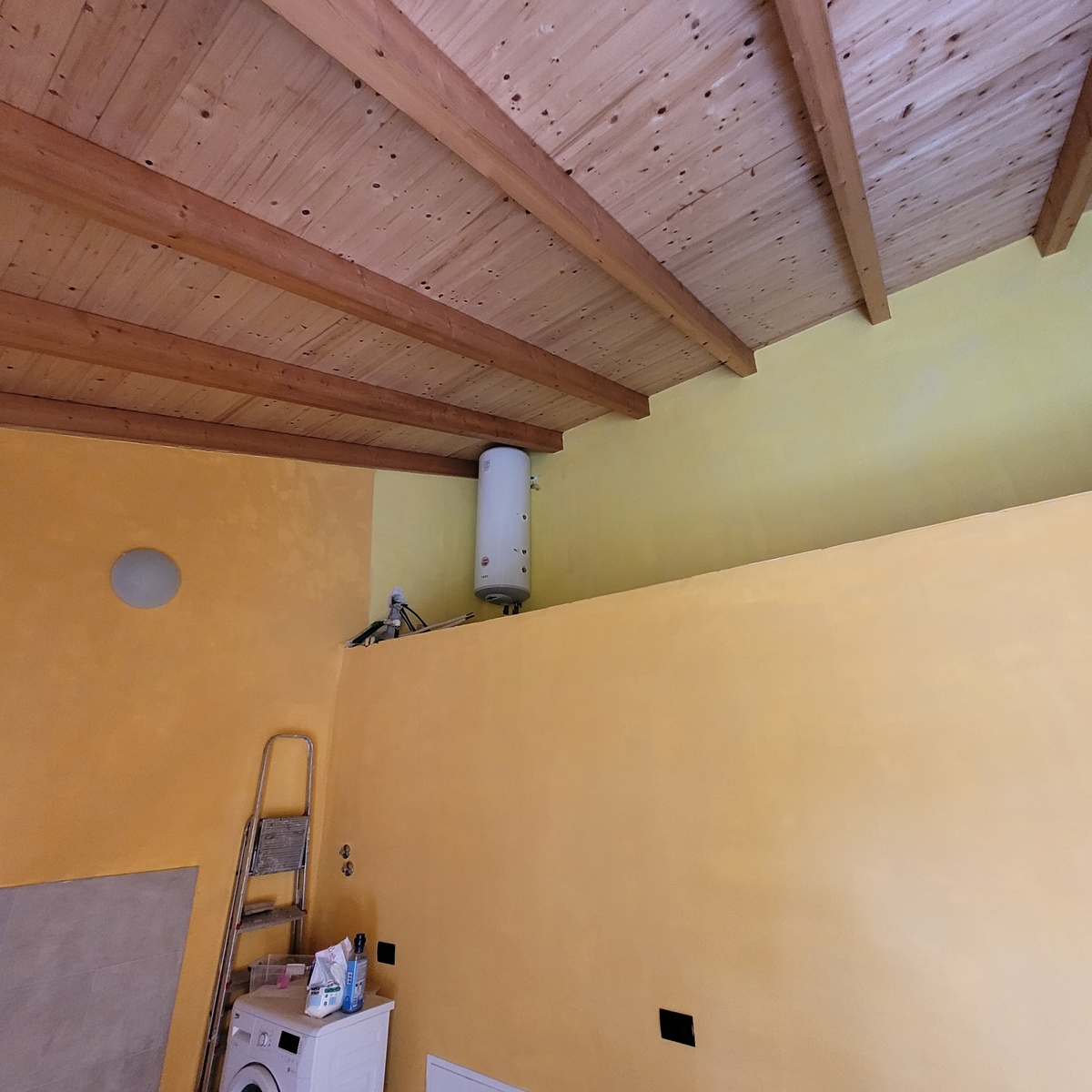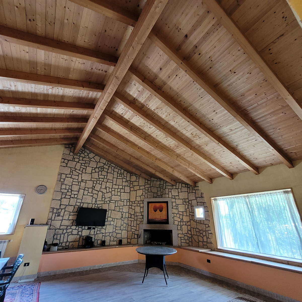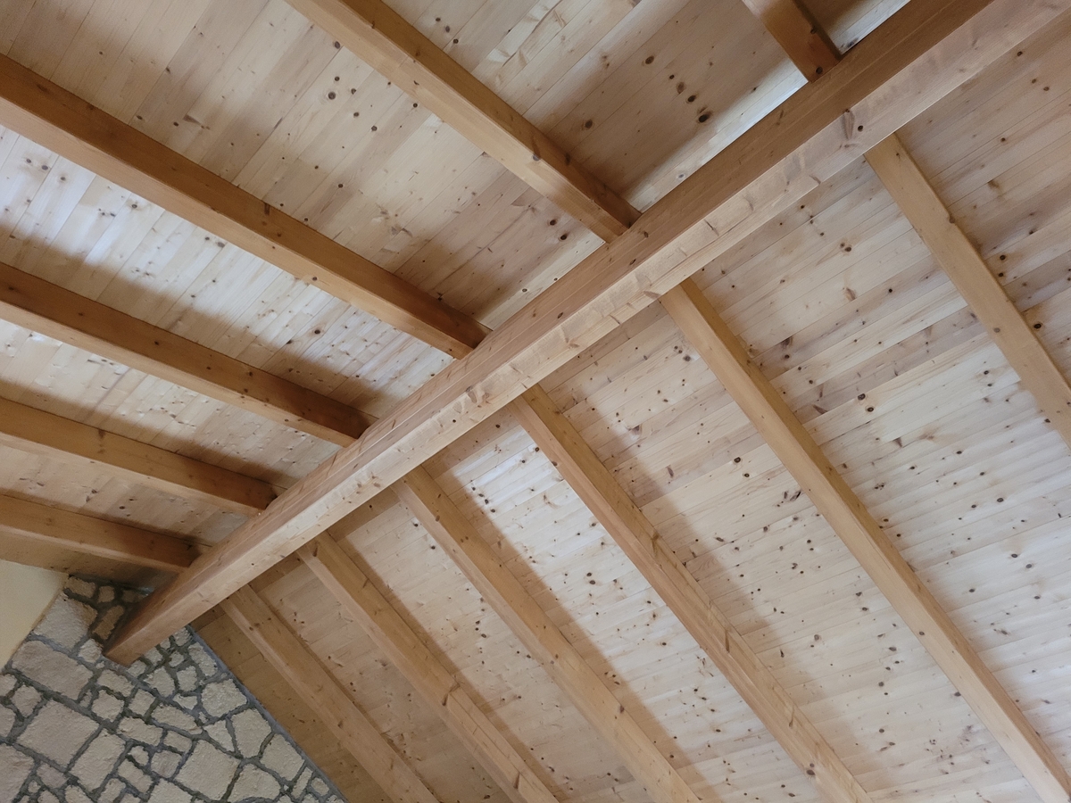 Acoperisul din tigla bituminoasa, realizat din lemn si izolat cu spuma hidroizolanta si vata minerala bazaltica de 20 cm.