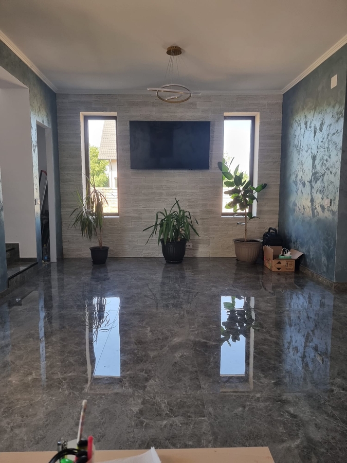 Casa de vanzare cu posibilitatea de mutare imediat, constructie finalizata 2025 cu parter si etaj, finisaje premium, camere supraveghere, iluminat exterior, fosa septica, gaze naturale, apa, curent electric trifazat, vecini pe toate laturile, zona linistita si foarte aproape de oras, supermarket foarte aproape (Peny, Carrefour, Mega si Lidl), scoli si gradinite, transport public (STB)