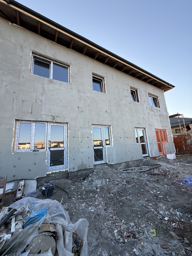 SUPER OFERTA !case solide finalizate curand, parter plus etaj, toate utilitatile, canalizare,gaz,curent ,pod inalt,finalizare rapida, curte generoasa, ideala pentru doua familii, pret cu tva inclus si negociabil, fiecare duplex are cate trei dormitoare, doua bai si dresing la etaj, balcon, la parter un living generos cu camera birou si bucatarie. o suprafata utila de 150 mp fiecare duplex, 75 mp parter si 75 mp etaj. Merita vazute!