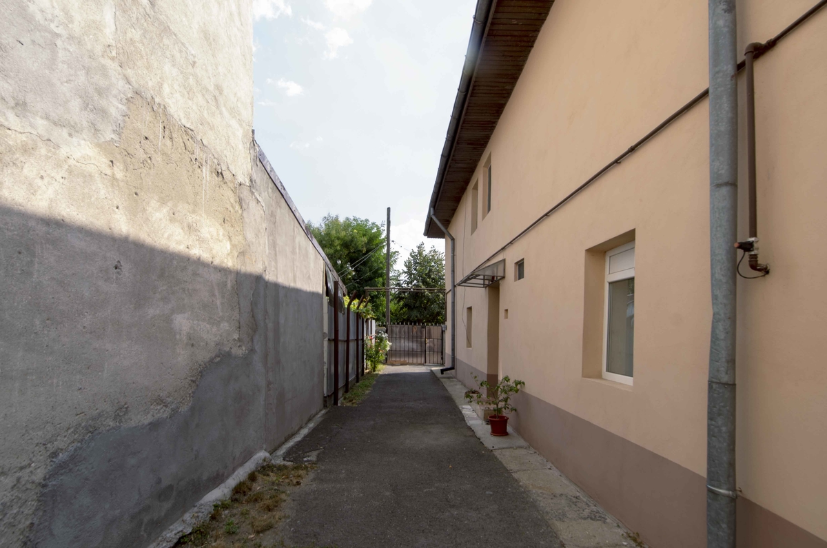 Se afla intr-o zona ferita de aglomeratia orasului, aveti o deschidere de 12mp, destul pentru parcarea a 2 sau 3 masini in fata porti.
