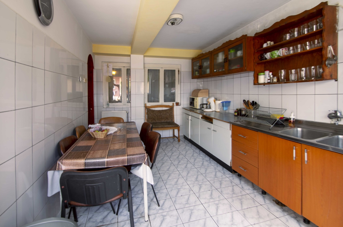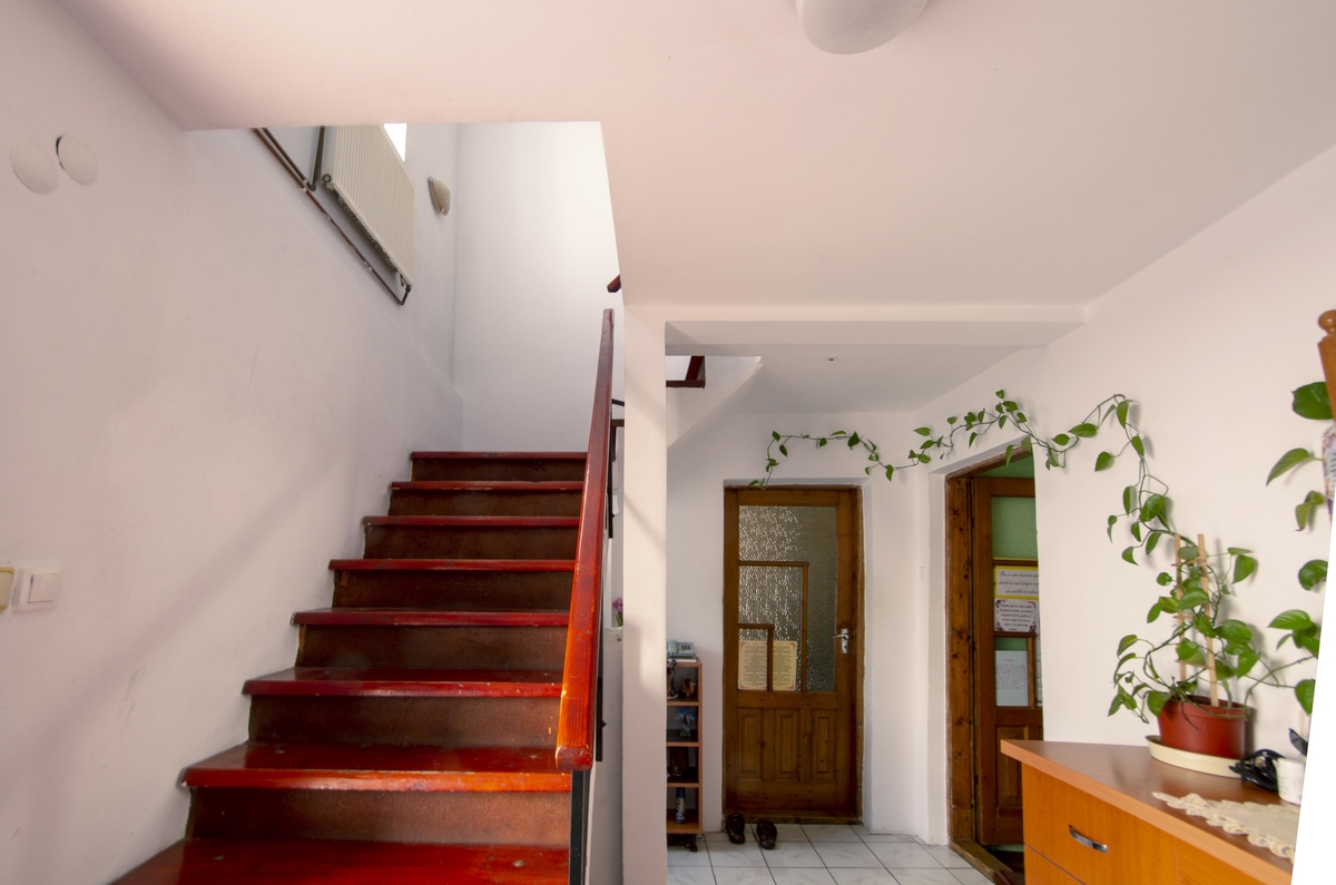 Casa dispune de 7 dormitoare si un Living, 3 bai, 1 bucatarie, 2 locuri de depozitare, si o Camere Tehnica ( loc pentru frigider,masina de spalat,dulapuri, masa de calcat haine, centrala...etc.), dispune si de un hol de 28 mp la etaj. Casa se vinde fara mobila, este situata la aproximativ 400 mp de Bd-ul Bucuresti noi si la 500 de metri fata de Parc Bazilescu.