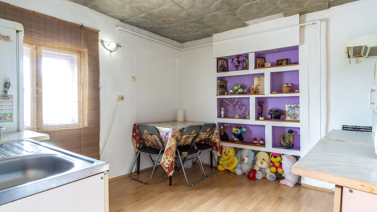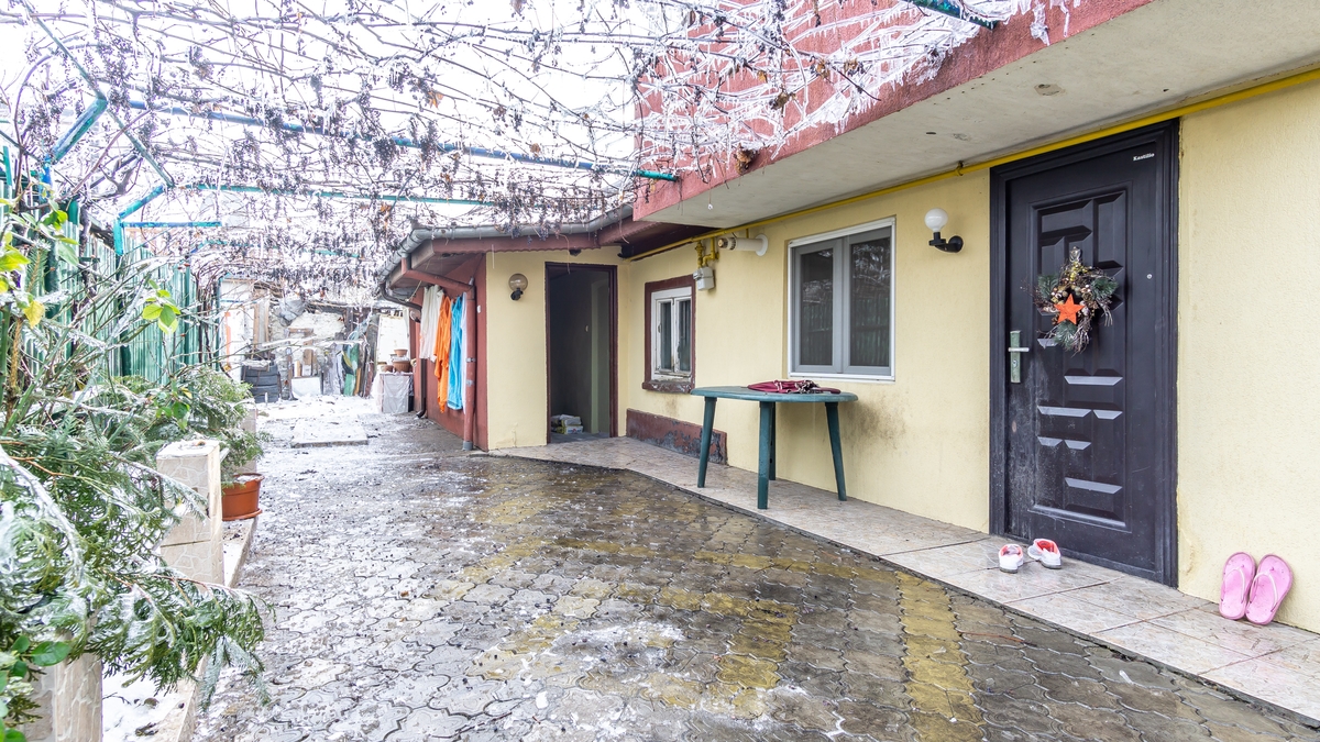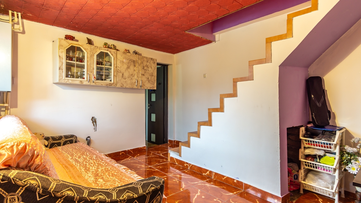 Orientată spre NE, locuinta are 4 camere, o baie cu geam de aerisire si o bucatarie ocupănd 79 mp suprafata utila si 107 mp suprafata construita. Jumătate din casa P+M este construita in 1999 cu structura de beton si BCA, cealalta jumatate fiind construita in 1960 din caramidă si finisajele pentru aceasta urmand a fi facute de cumparator dupa propiile gusturi.