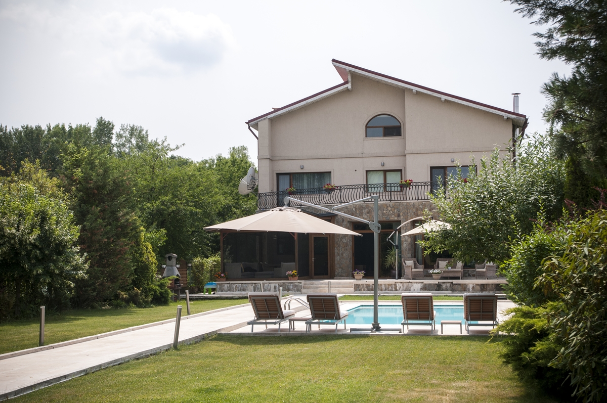 vila cu piscina si vedere splendida spre lac si padure, compusa din D+P+1+M, 6 dormitoare, 6 bai, 603 mp suprafata utila totala, compartimentare buna, camere luminoase, terase, ponton lac, comision 0.