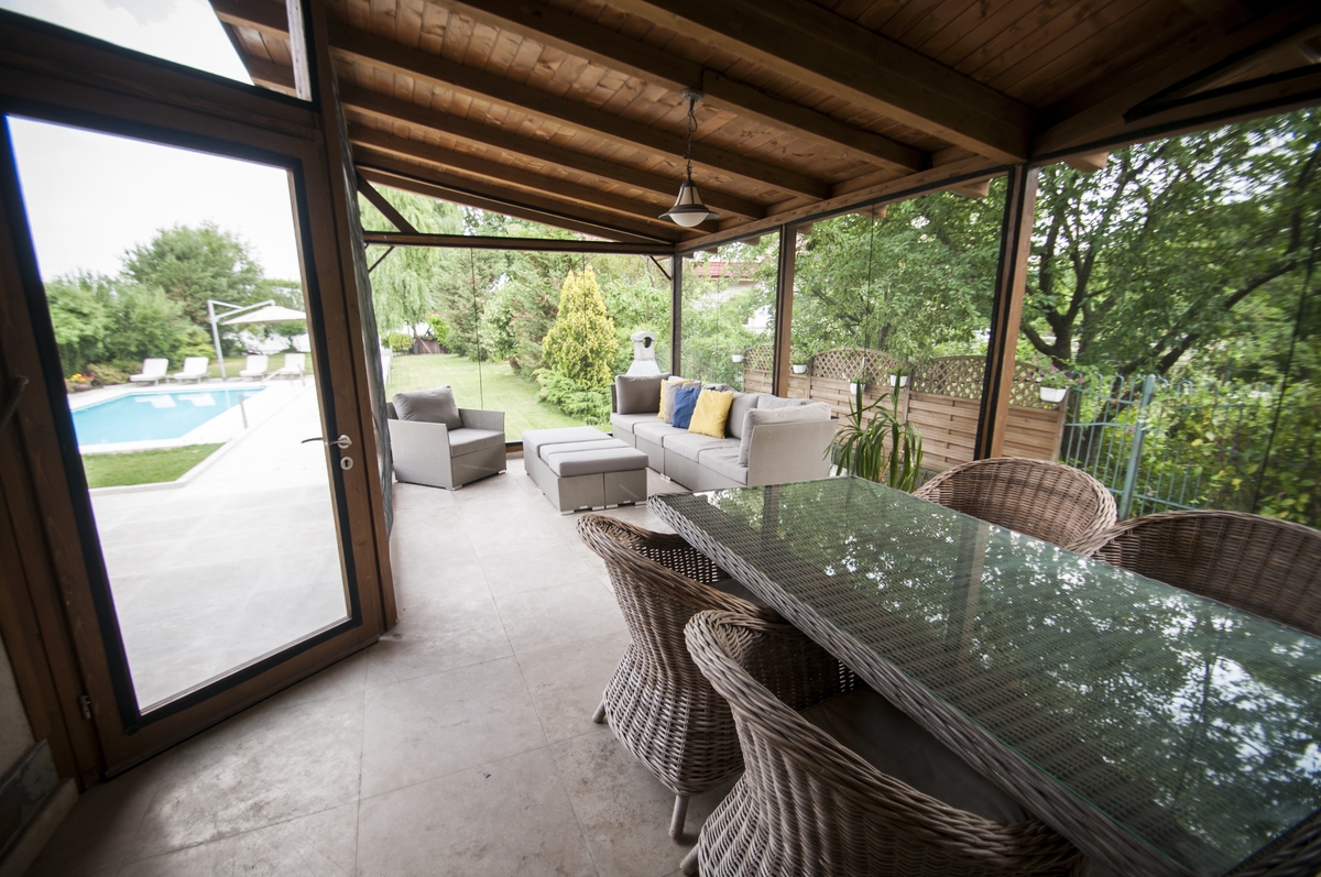 Optiuni exterior: Curte amenajata Curte pavata Gradina Piscina Porti electrice Sistem irigatii