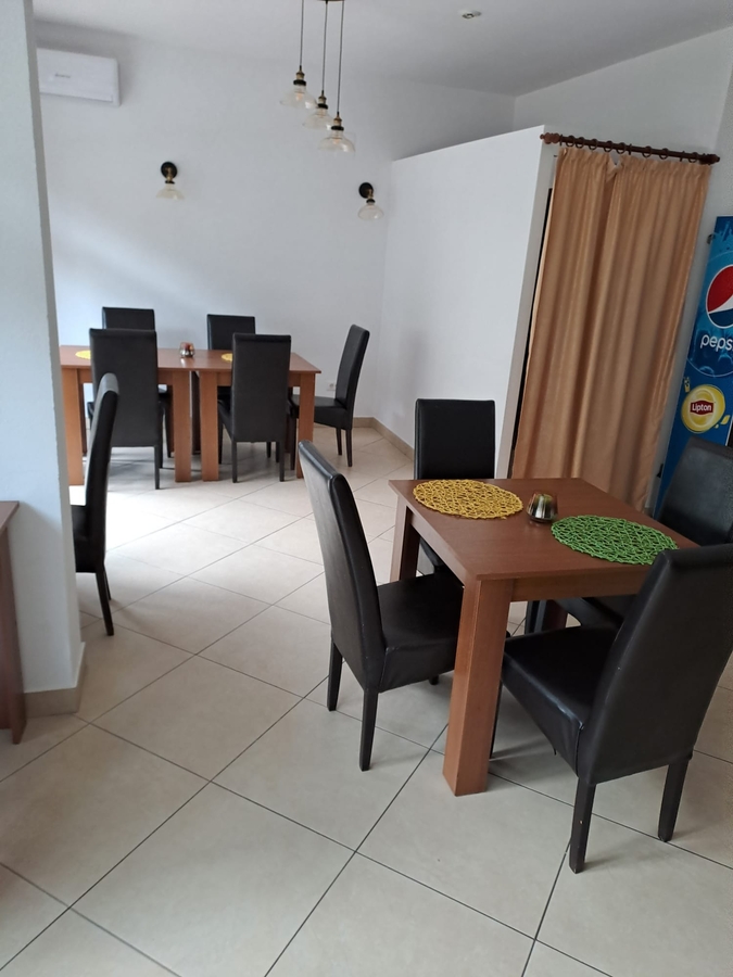 La parter, exista doua camere de cazare, o sala de receptie si cazare, cu un bar, o bucatarie si trei grupuri sanitare.