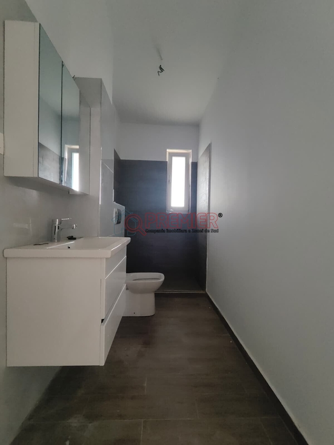 O locuinta moderna si luminoasa, situata intr-un ansamblu cu acces securizat, conectat la canalizare, apa curenta, gaze si electricitate, perfecta pentru o familie care apreciaza confortul si intimitatea.