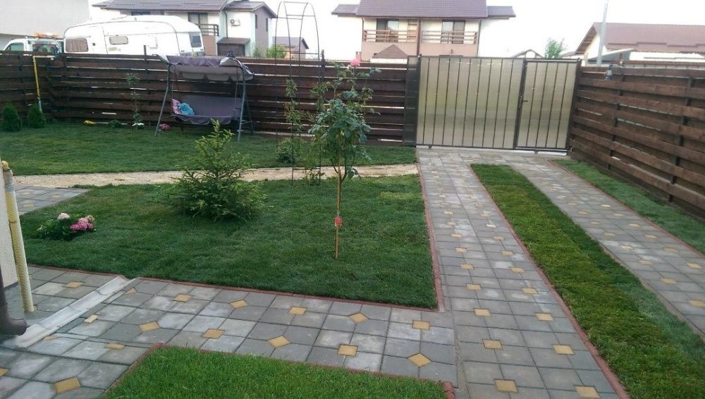 - Curte interioara cu gazon si alei betonate