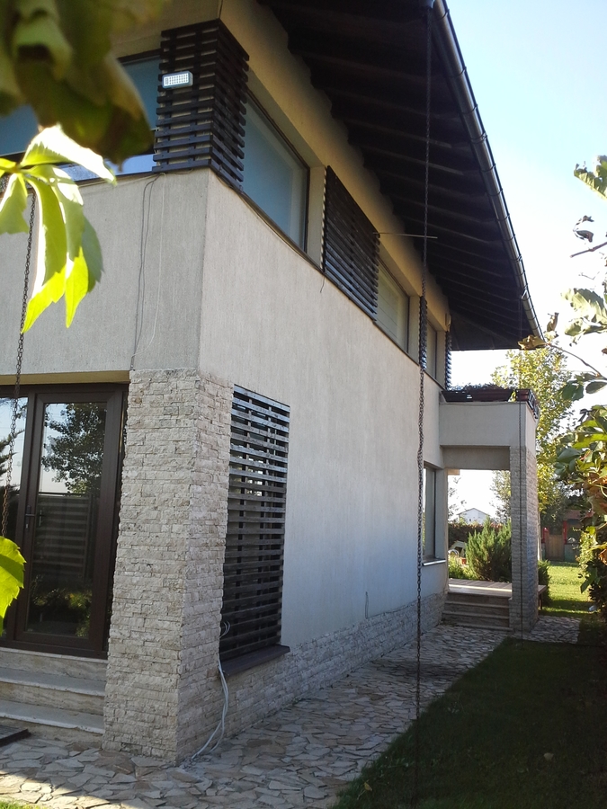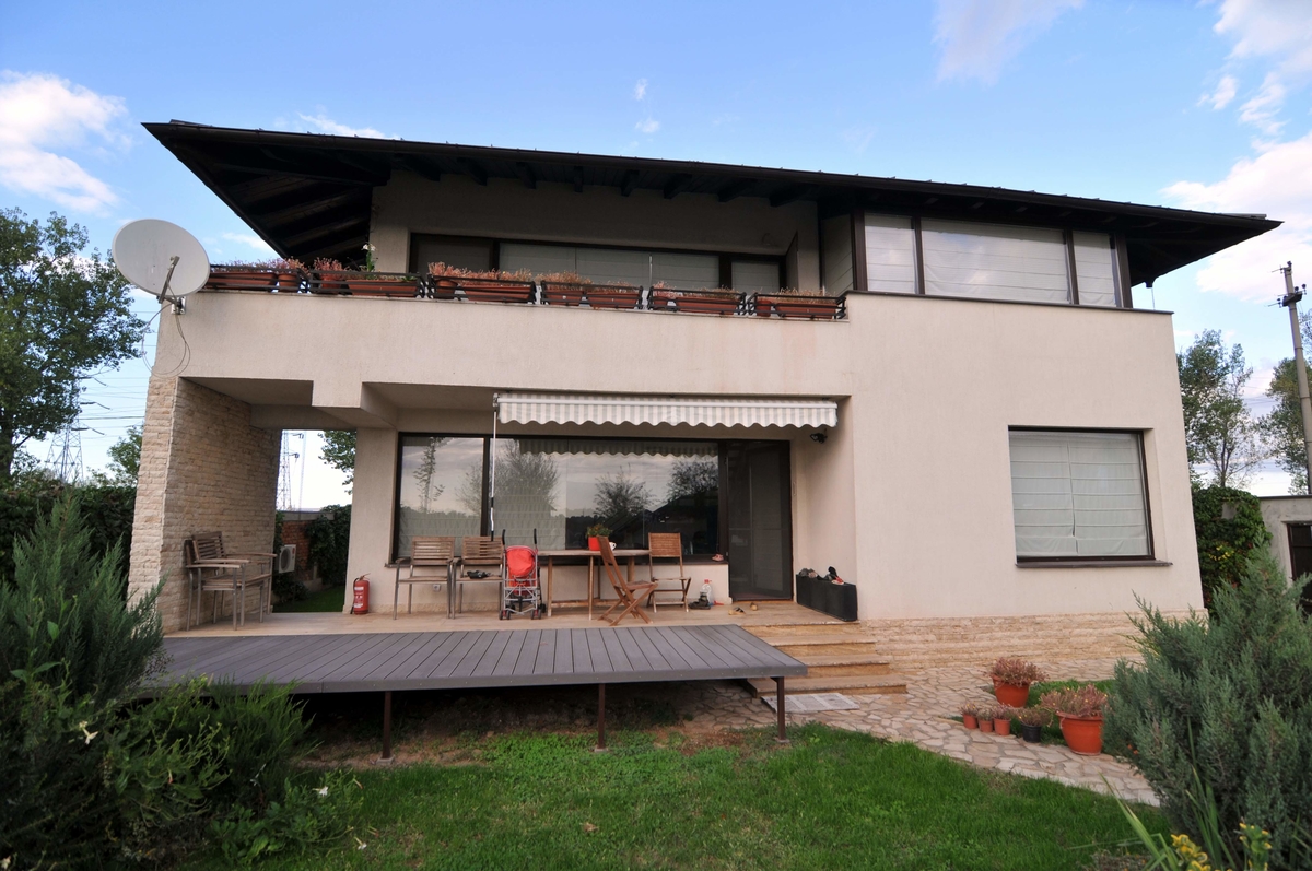 Casa P+1 arhitectura moderna, foarte luminoasa, renovata integral interior/exterior in 2022, influente stil brancovenesc, eficienta energetic. Finisaje de calitate, gard cu centura si stalpi din beton + caramida, curte amenajata, piscina cu instalatie de filtrare si curatare, instalatie irigare programabila, foisor, camera tehnica, camera depozitare, fosa septica, fantana de adancime, instalatie filtrare si dedurizare apa, gaz, energie electrica, posibilitate de racordare la reteaua de apa curenta si canalizare in maxim 6 luni. Interior amenajat cu bucatarie mobilata si echipata, centrala termica noua, dressing mobilat, bai amenajate integral, unitate aer conditionat, sistem de ventilatie permanenta sau ocazionala prin luminator actionat electric.
