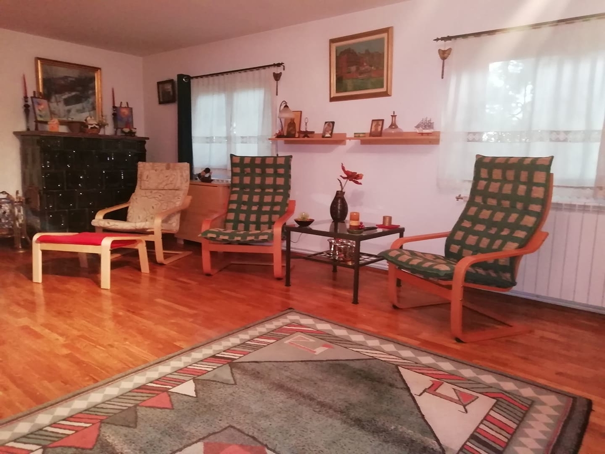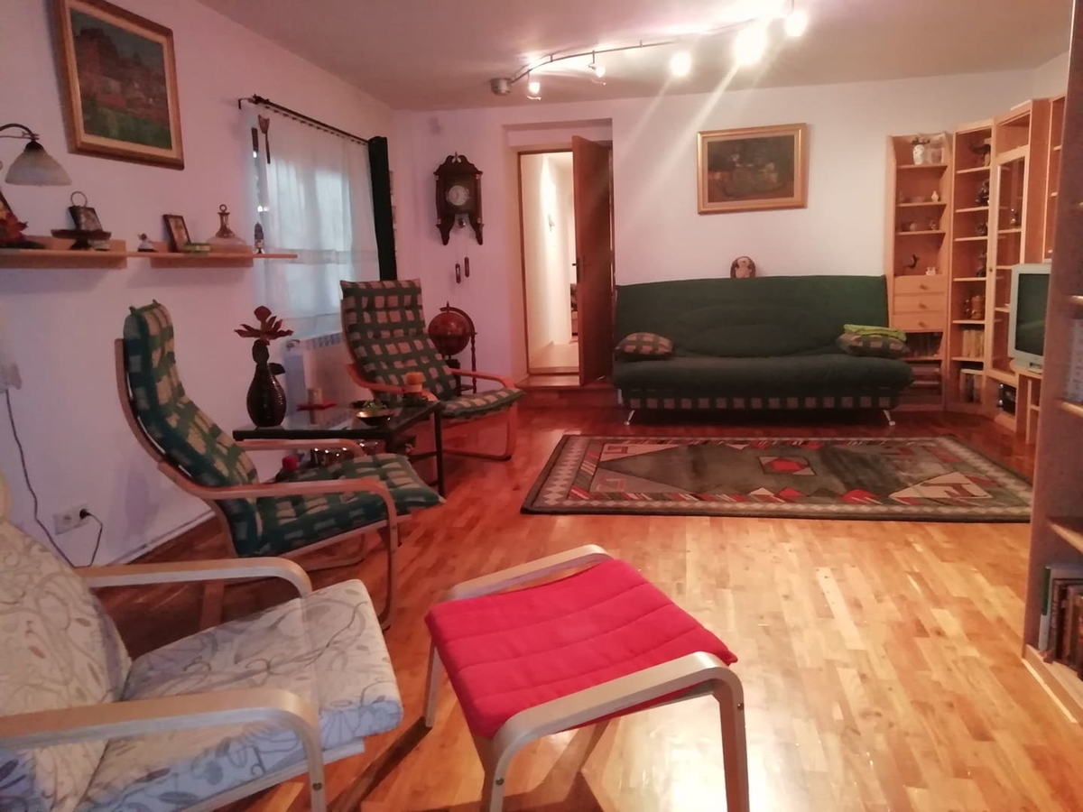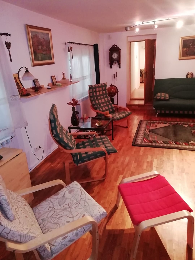 Localitate Cernica sat Tanganu,Vila S+P+M construita in scop personal,intretinuta impecabil,(a fost folosita ca si casa de weekend) ,compusa din :bucatarie,camera de trecere,2 dormitoare,baie,living,crama. Se poate vinde inclusiv cu mobilierul din imagini la pretul unui apartament cu doua camere din ziona Dristor.Distanta fata de Auchan Vitan este de 25 km,iar timpul parcurs 30 min. la ora de varf,ora 18.Propriatatea are deschidere la sosea asfaltata cu utiltati racordate (gaze,curent,apa) ,vecinatati locuite si prezinta avantajele unei proprietati ce a fost construita pentru folosinta proprie a familiei ,nu in scopul vanzarii imediate si obtinerea unui profit.Astfel materialele folosite ,precum si grija detaliilor sunt net superioare unei constructii ce serveste unei vanzari premeditate.Proprietatea beneficiaza de un acces facil din living, catre crama ,ce este inalta si aerisita printr-o fereastra .Deasemenea casa este echipata cu centrala termica pe gaz,sistem de alarma,apa curenta si fosa septica,parchet din lemn masiv si termoizolatie exterioara.Curtea este generoasa,cu pomi plantati si o anexa pt caine.
