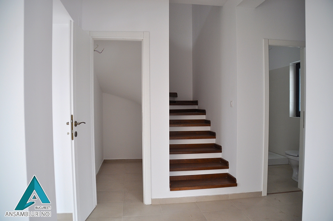 Chitila, Lacul Chitila, vila tip duplex P+1+Pod, suprafata construita 150 mp, suprafata utila 130 mp, suprafata terase 23 mp, suprafata teren 210 mp, teren liber 150 mp, pret 136.000 euro.