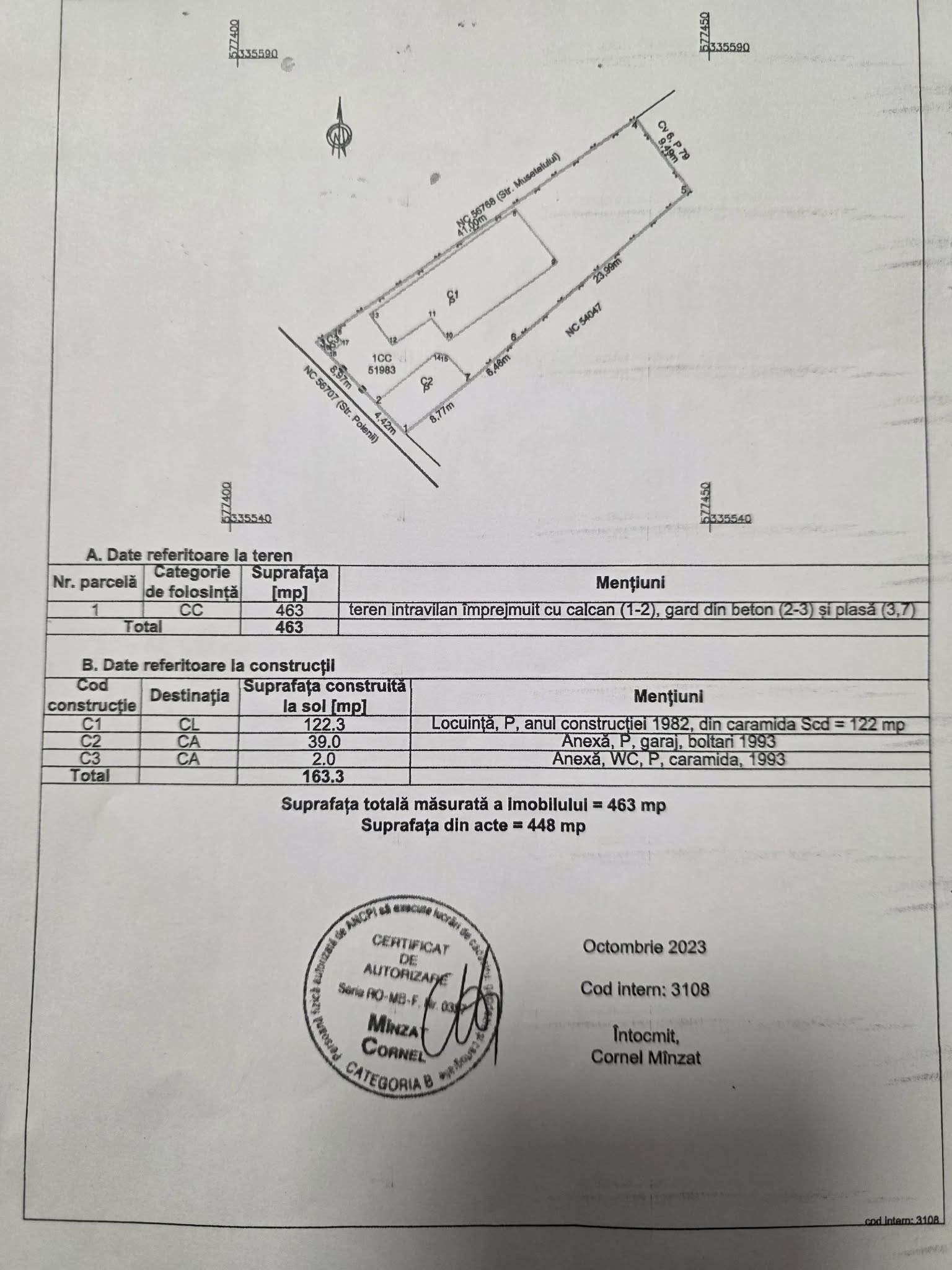 Teren total 463mp,deschidere la strada principala 13.4`ml.pozitionata pe colt.