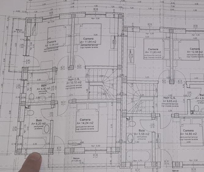 * 5 dormitoare, 3 bai, bucatarie separata, living generos, hol cu spatii de depozitare.